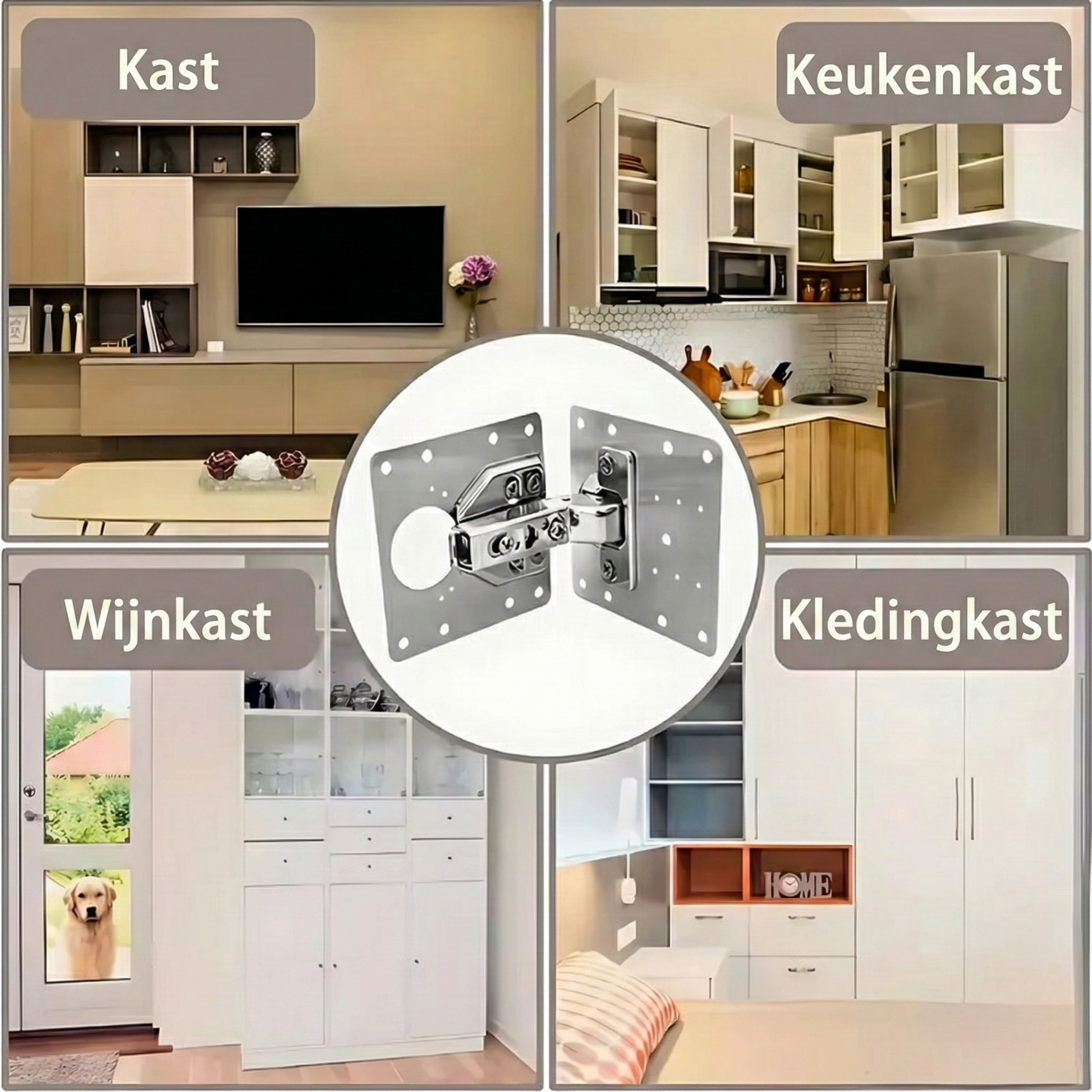 | Pakket Bevat | 10x HingePlate + 60x Schroeven / 20x HingePlate + 120x Schroeven |