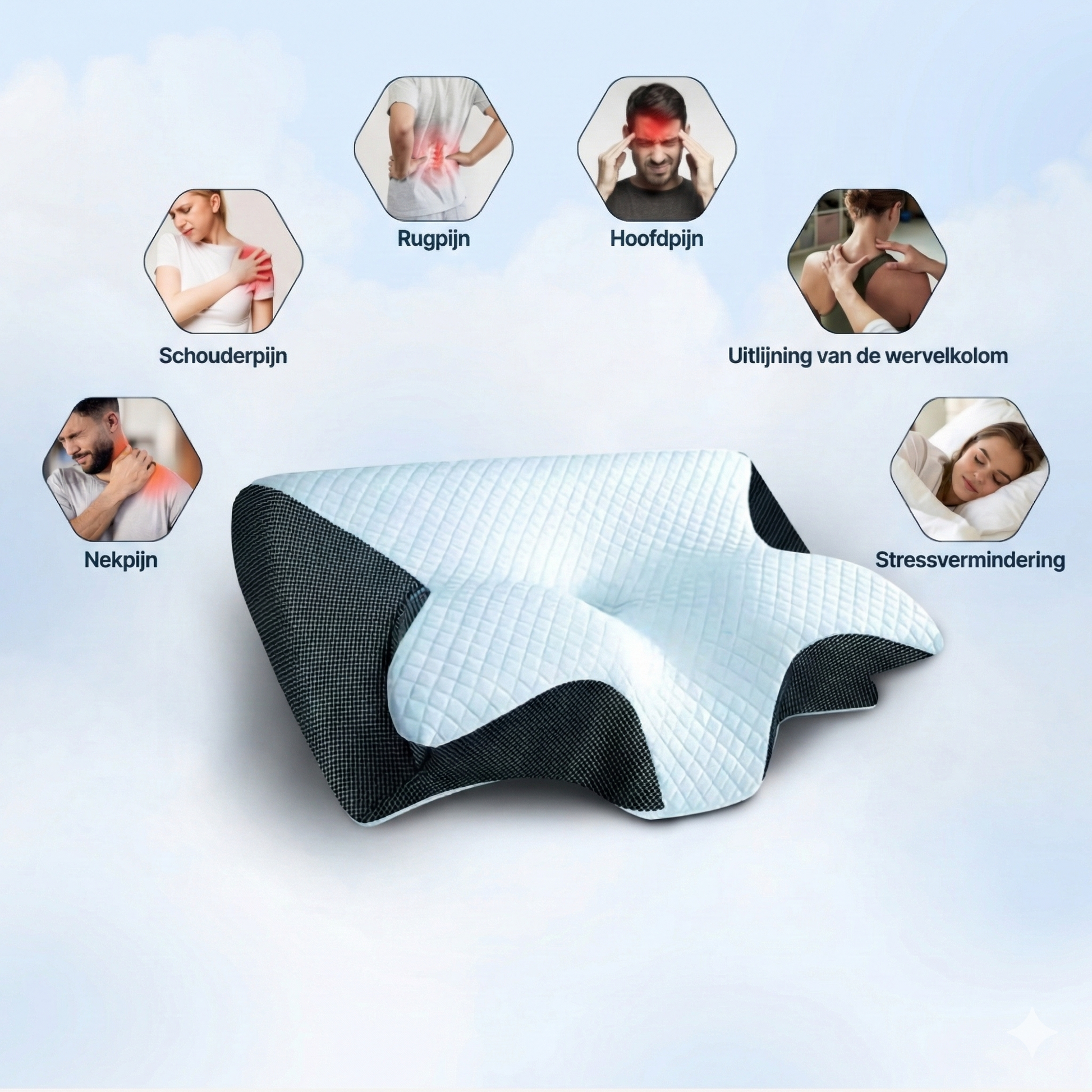 Het ergonomische ontwerp past zich aan je slaaphouding aan en zorgt overal voor een stabiele ondersteuning van de halswervelkolom.