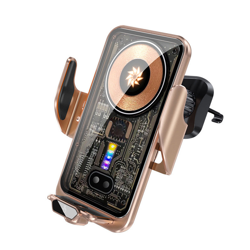 Met zijn draadloze oplaadfunctie en intelligenteontwerp, Deze telefoonhouder is perfect om je apparaat van stroom te voorzien en gemakkelijk toegankelijk te houden tijdens het dagelijkse woon-werkverkeer of lange autoritten.